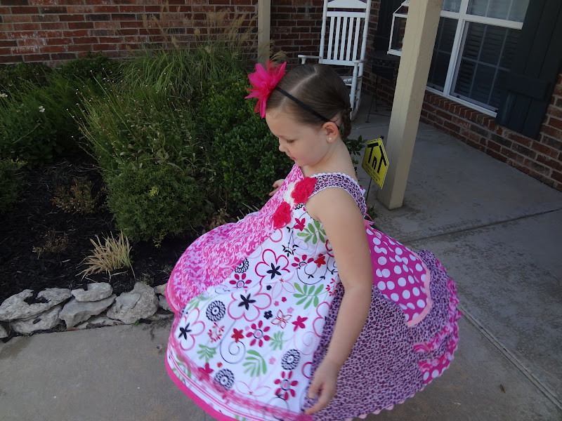 I decided on the Feliz dress. So, Kate and I headed off to Hobby Lobby to choose fabrics. I let her choose the fabrics with a little guidance. One of the fabrics I probably would't have chosen, but I really wanted her to be involved in the creative process and she loves the dress! I think a lot of that is because she chose each fabric.